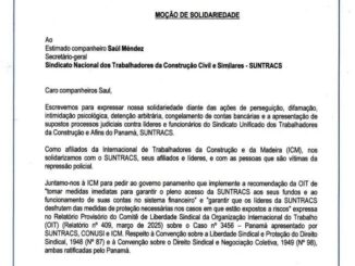 Moção de Solidariedade à SAÚL MÉNDEZ, Secretário-Geral do Sindicato Nacional dos Trabalhadores da Construção Civil e Similares – SUNTRACS 9 de setembro de 2025 blogdosindicato 0